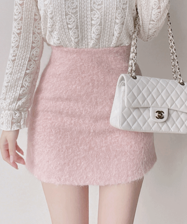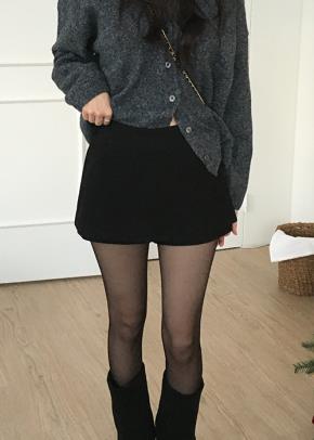 裏起毛ベルベットリブコーデュロイジップアップハイウエストスリムHラインミニ無地スカート