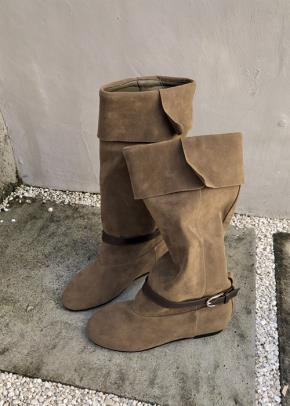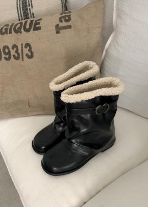 レザー調ジップアップIラインワイドウンドトゥブーツ