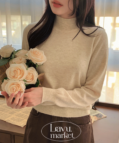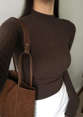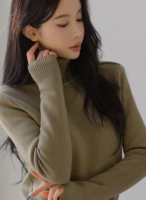 ファー裏地ソフトタートルネック長袖スリムベーシックニット