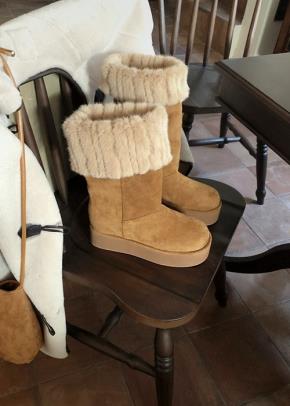 ファー裏地リブウエストゴムスリムブーツカットパンツ