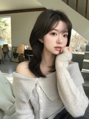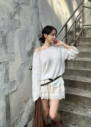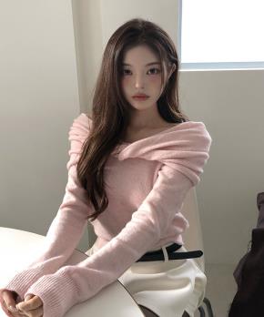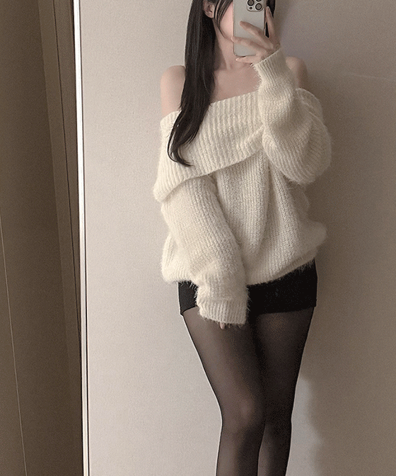 メランジオフショルダー長袖ルーズオーバーサイズニット