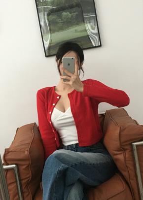 エコパール配色ボタンカラーパール調ボタン肩パッドスリム長袖カーディガン
