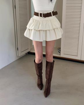 サイドジップショートAラインHラインカラースカートパンツベルト付