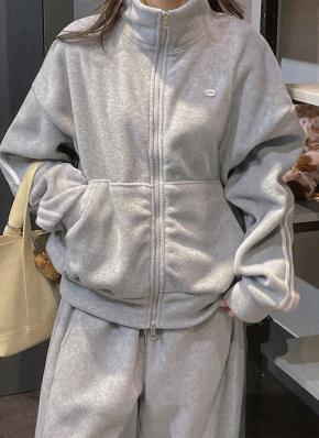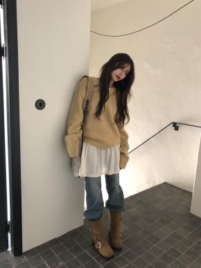 裏起毛ソフトラウンドネックボクシールーズ長袖刺繍スウェット