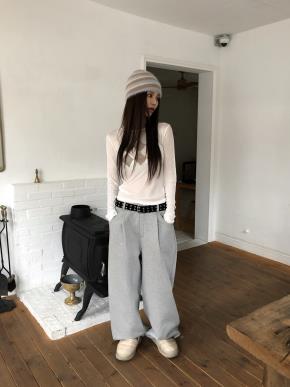 裏起毛ドローストリングピンタックポケットバックゴムワイドジョガーパンツトレーニング2WAY