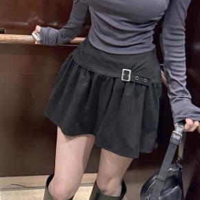 スエード調ジップアップハイウエストバックゴムスカートパンツ