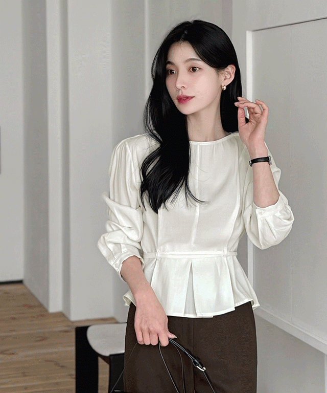 ジップアップペプラムスリム長袖タックブラウスストラップ付