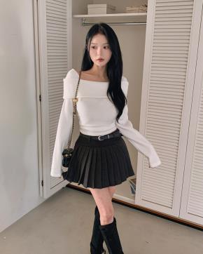 プリーツミニAラインペンダントサイドジップスカート