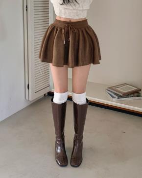 スエード調ウエストゴムフレアショートスカートパンツ