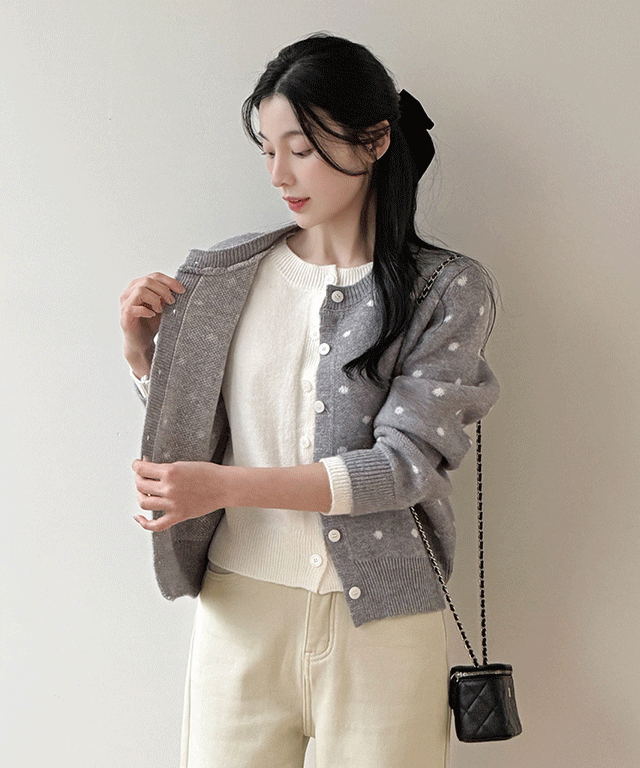 ボタンVネックベーシックペンダントセミクロップドカラーカーディガン