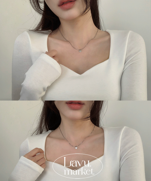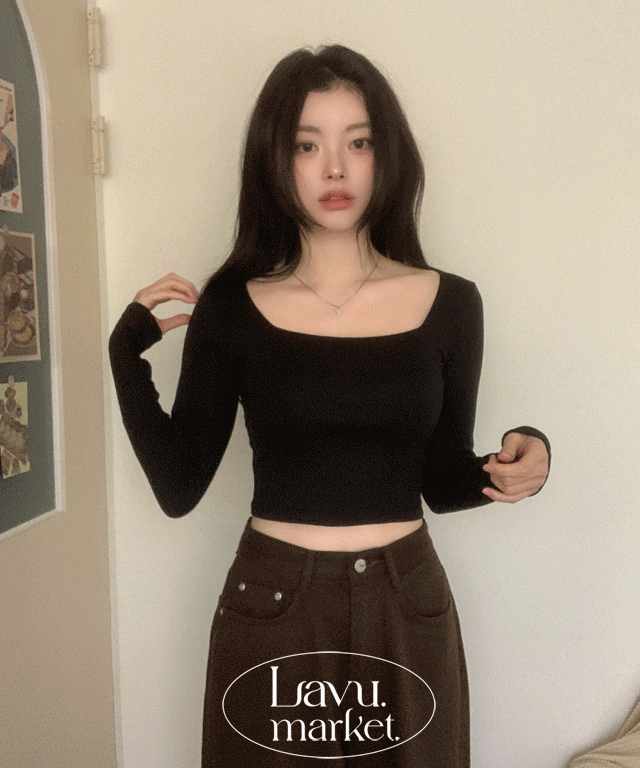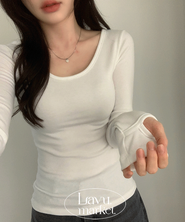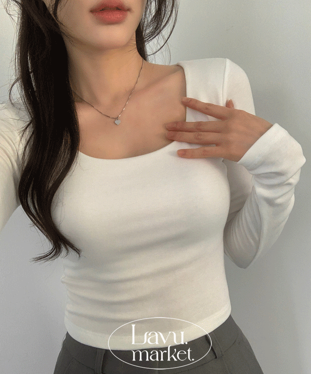 裏起毛スクエアネックハートネッククロップドスリム長袖無地Tシャツ