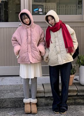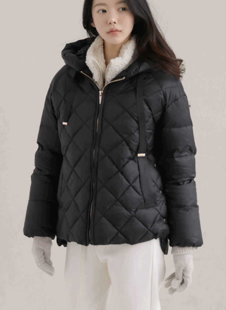 ボアフードドローストリングポケットオーバーサイズルーズキルティングダウンジャケット