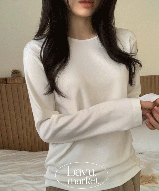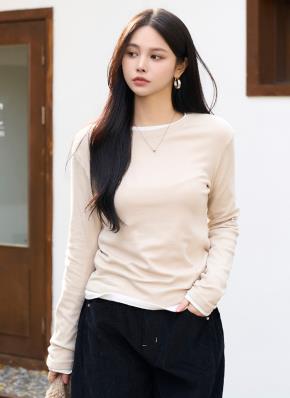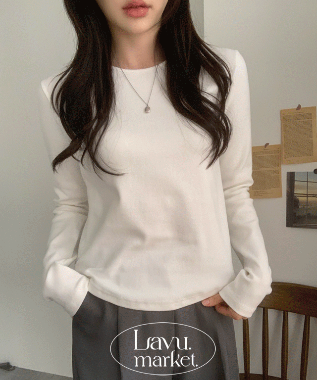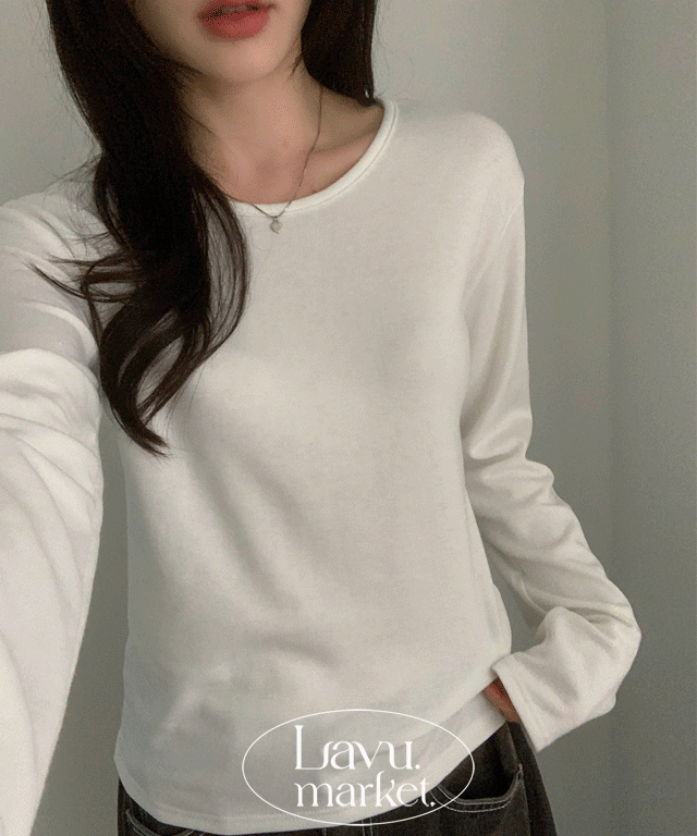 裏起毛ストレッチソフトUネッククロップドスリム長袖Tシャツ
