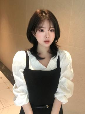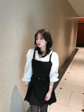 ストレッチスクエアネックパフスリーブスリムシャーリング