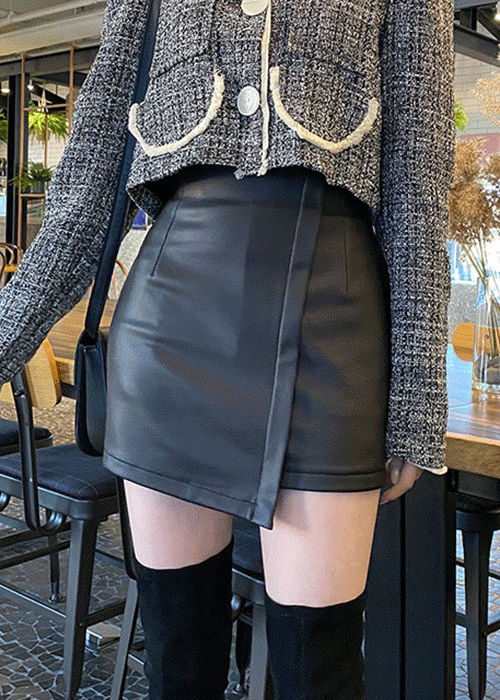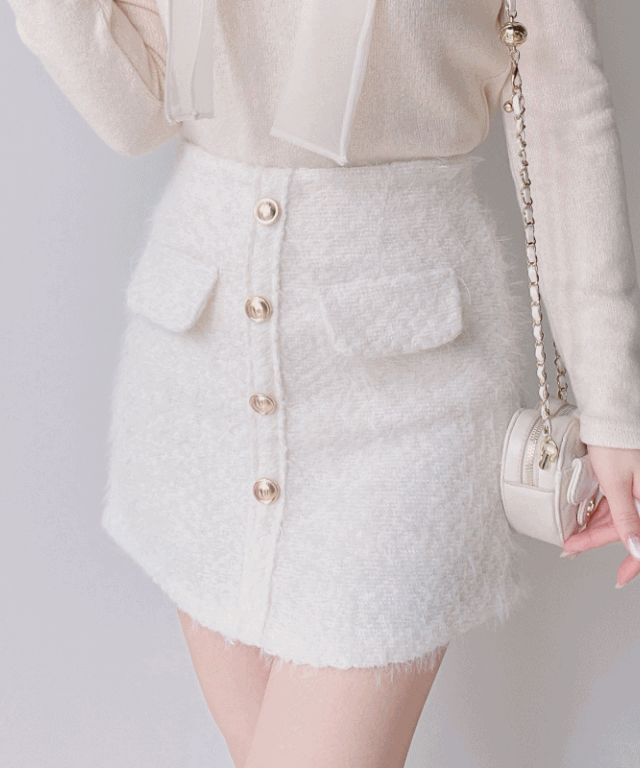 シャギーHラインミニフェイクポケットフェイクボタンバックゴムサイドジップスカート