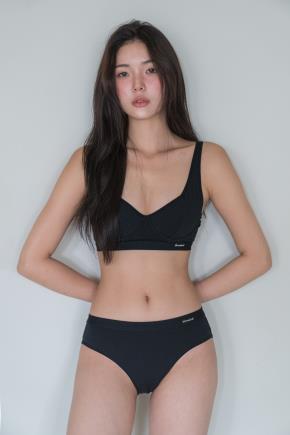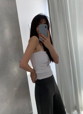 ニットウール混ストラップラウンドネック無地ビスチェ