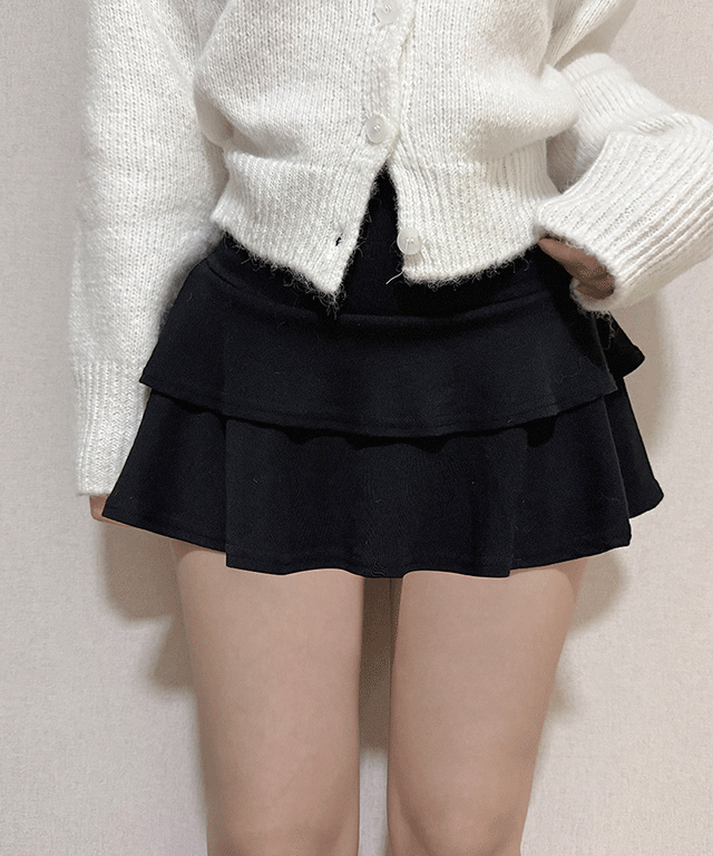 ストレッチハイウエストミニフレアティアードスカートパンツ