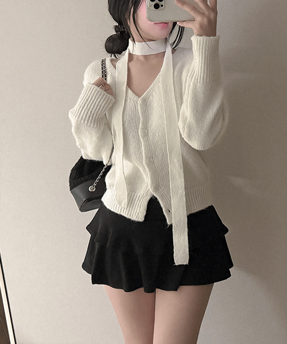 ニットストレッチスリム長袖カーディガンタンクトップアンサンブルストラップ付