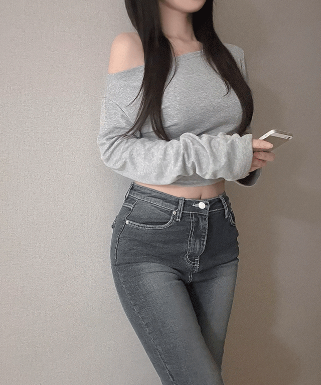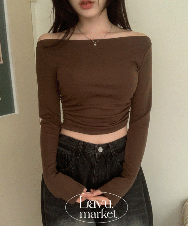 裏起毛クロップド長袖ワンショルダーオフショルダーTシャツ