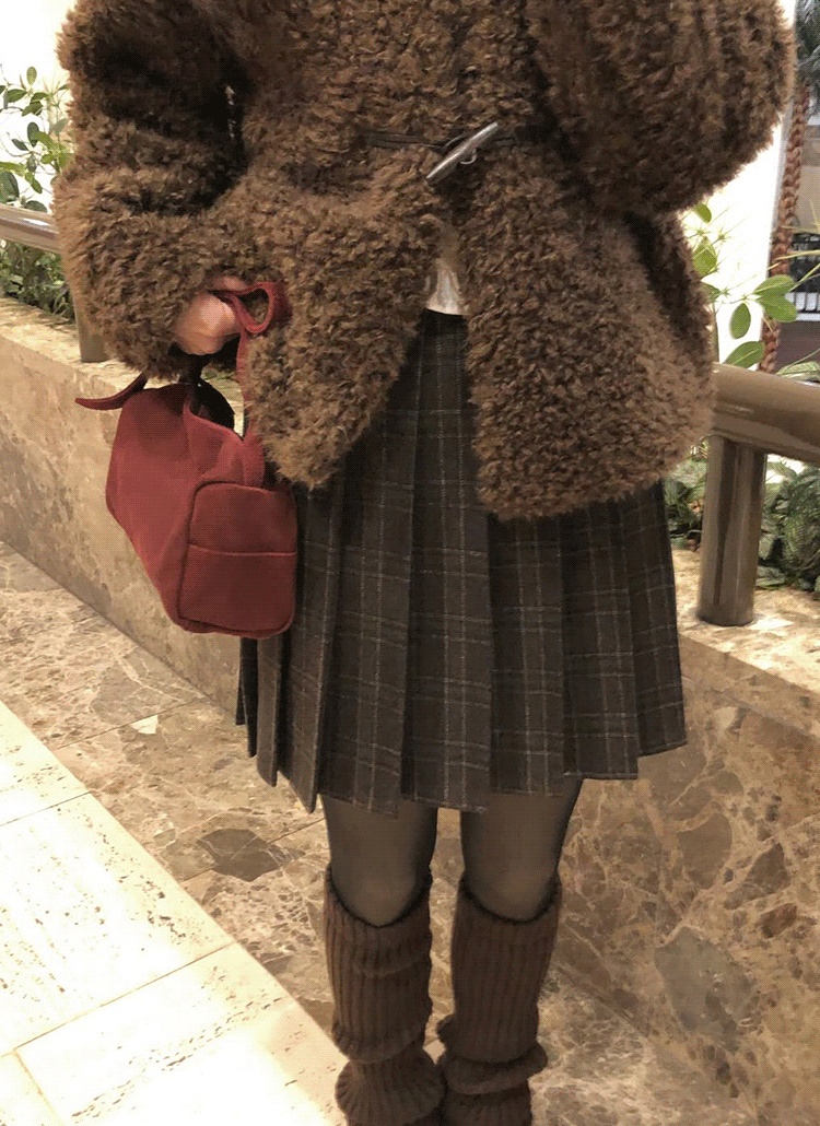 ウール混プリーツバックゴムサイドジップミニチェックスカート