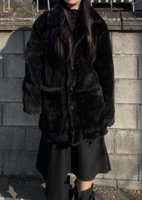 スエード調エコファーボタンポケットルーズ長袖ハーフジャンパーストラップ付
