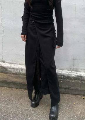 バックルラップバックゴムロングサイドジップカラースカート