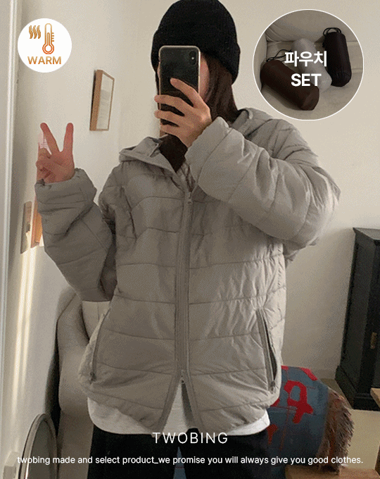 ウェルロンナイロンジップアップフードダブルジップ軽量ダウンジャケットポーチ付