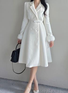 エコファーロングフレアAラインカラーコートベルト付