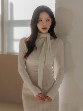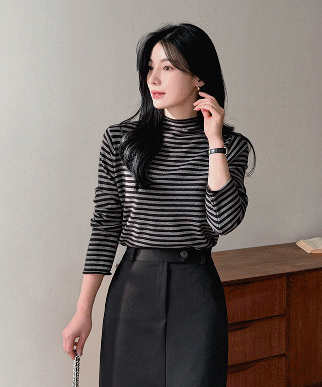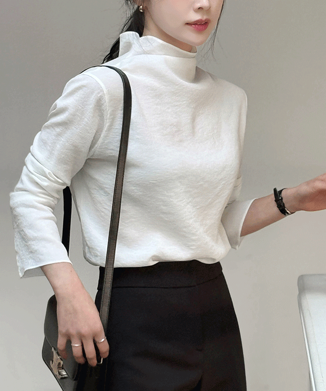 リンクルリバーシブル長袖ベーシックハーフネックブラウス