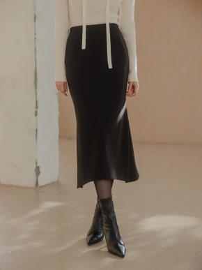 裏起毛ジップアップスリットラインロングマーメイド無地スカート