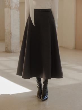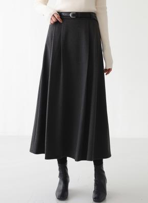 ウール混ベルトポケットロングAラインスカートベルト付