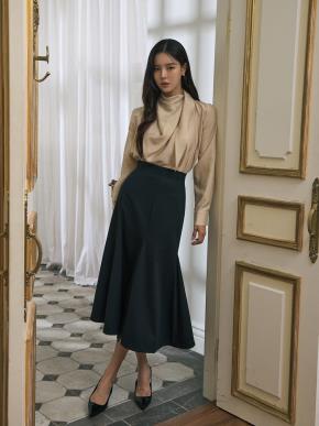 ウール混ジップアップリンクルロングマーメイドスカート
