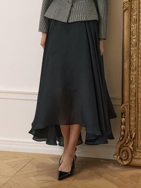 シフォンジップアップスリムレイヤード風ロングスカート