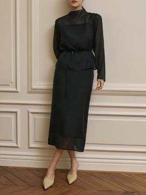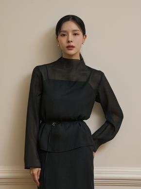シースルージップアップラウンドネックベーシック長袖ブラウスベストストラップ付