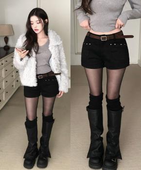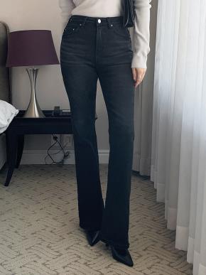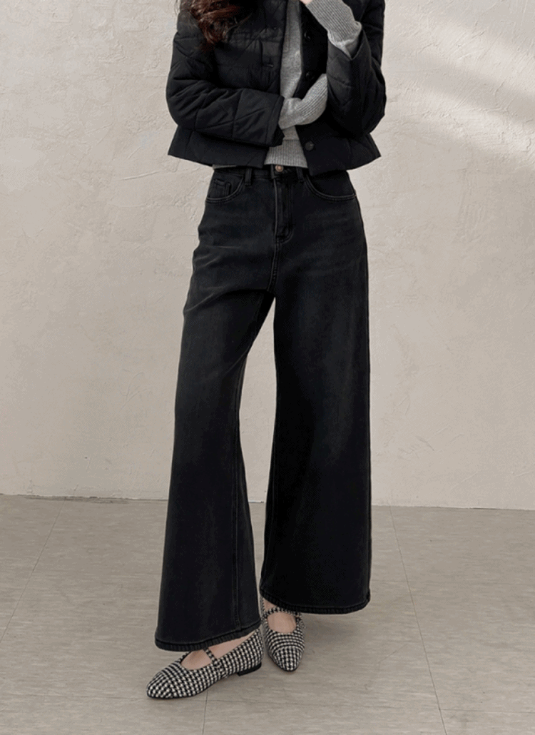 ファー裏地セミワイドハイウエストウォッシングデニムパンツ