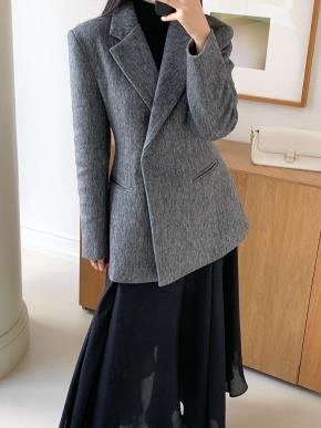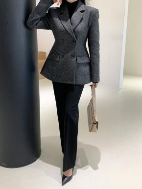 ウール混カラーポケットスリム長袖ダブルボタンジャケット