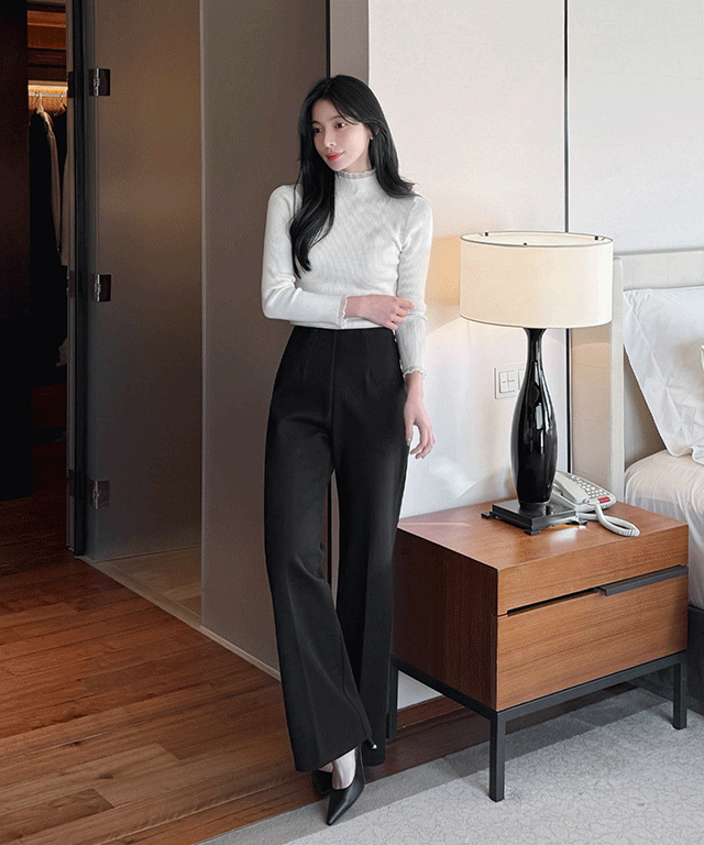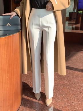 裏起毛ピーチ起毛ポケットウエストゴムストレートブーツカットスラックス