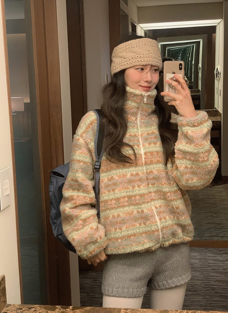 ボアソフトボタンカラーポケットルーズ長袖ハーフジャンパー