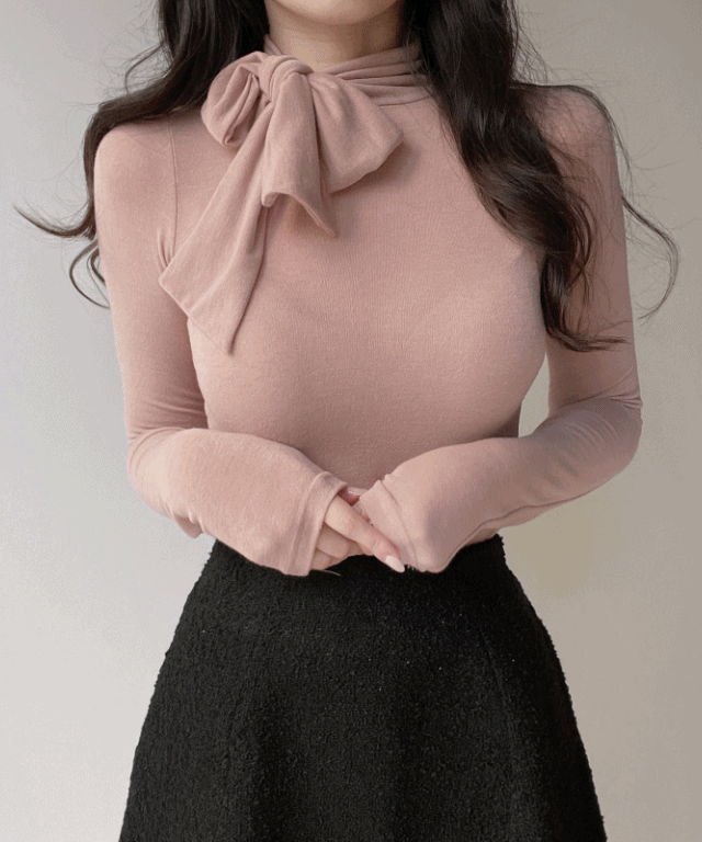 リブストレッチミニタートルネック長袖スリムギャザーワンピース