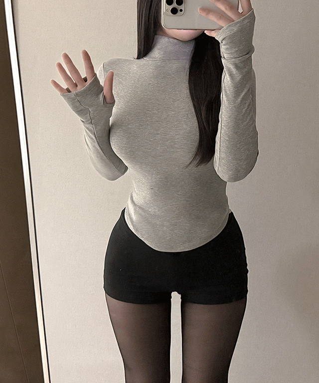 裏起毛ストレッチタートルネックウォーマースリム長袖Tシャツ