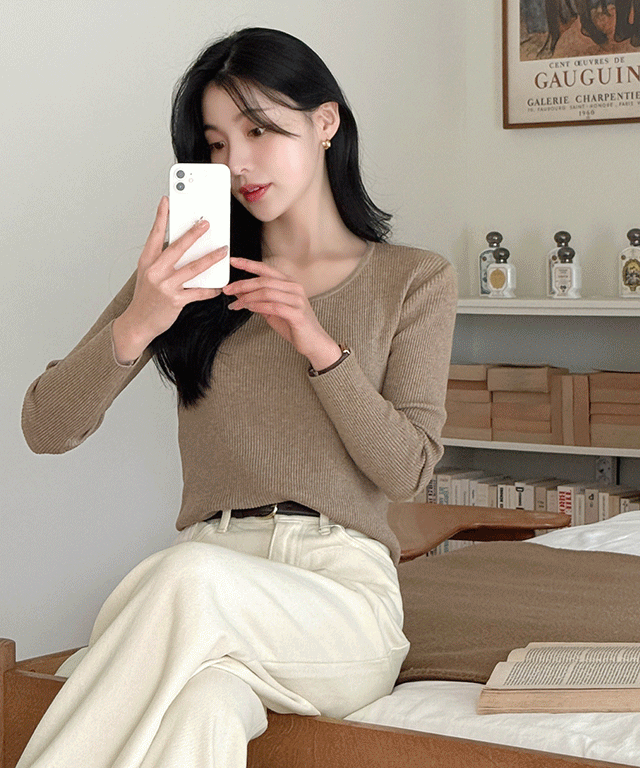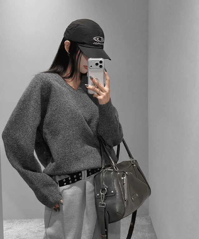 ラウンドネックVネックパッチベーシックカラーニット