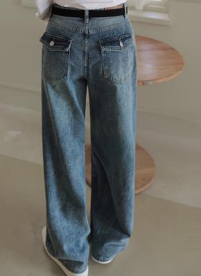 裏起毛ウォッシングポケットビンテージリベットワイドデニムパンツ