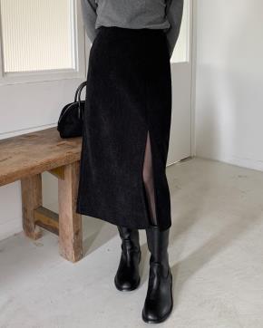 コーデュロイファー裏地Iラインスリットバックゴムサイドジップスカート