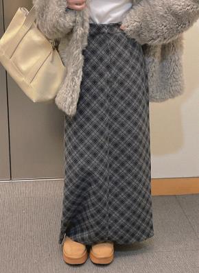 ツイードブークレジップアップラインHライン(ロング丈)チェックスカート