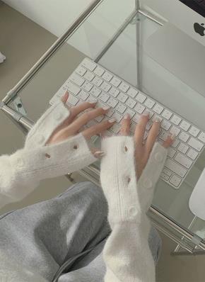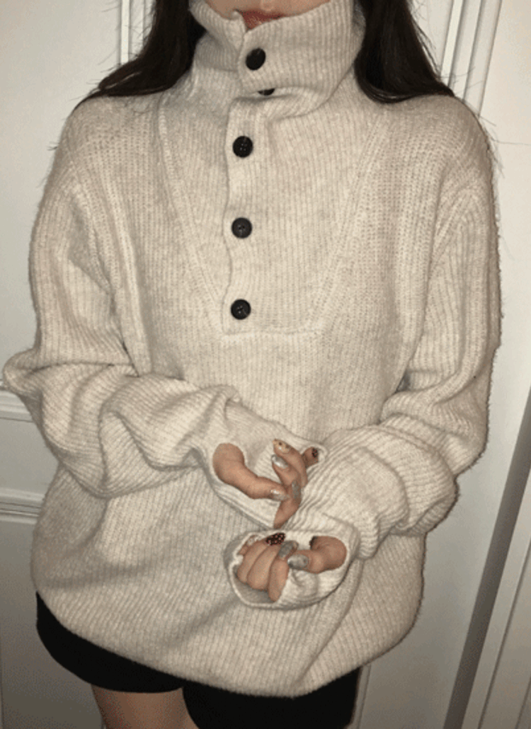 ボタンタートルネックアームウォーマーボクシールーズ長袖ニット