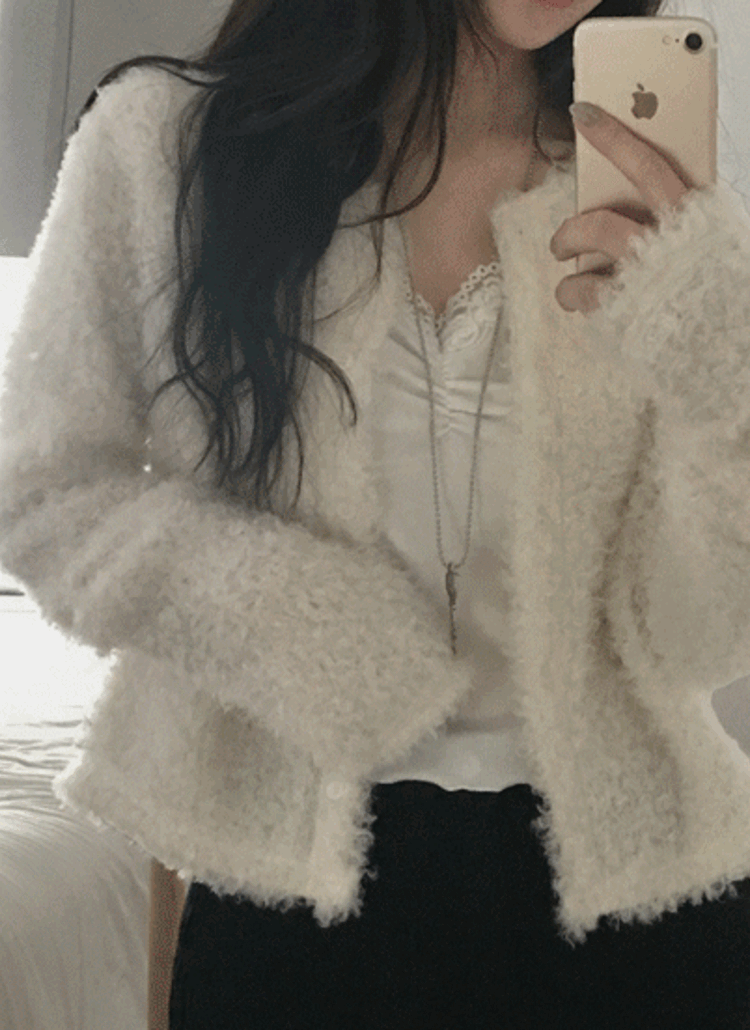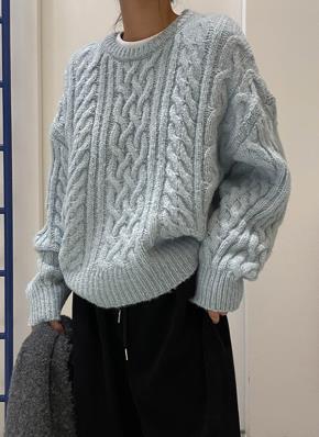 シャギーブークレウール混アルパカ混紡ラウンドネックニット