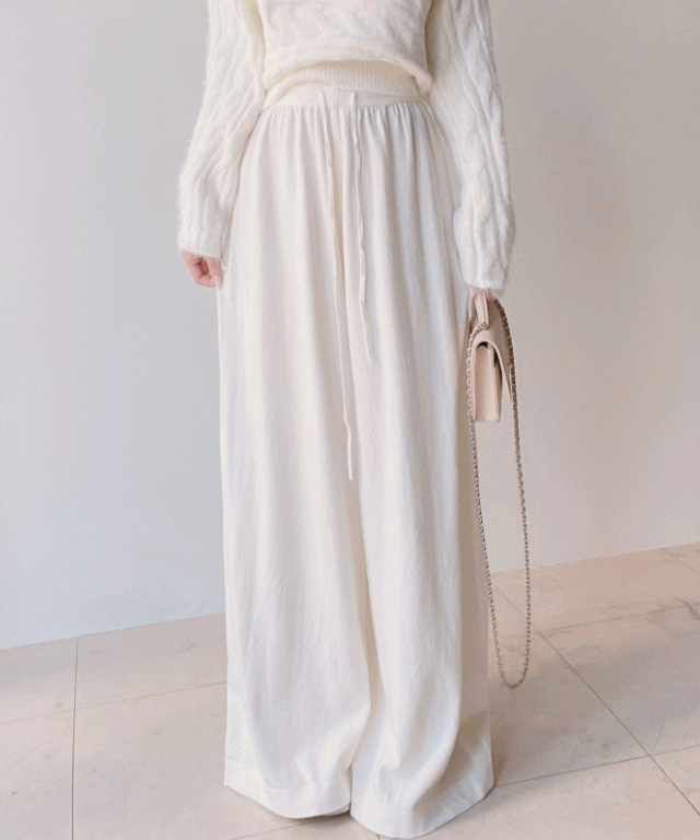 ドローストリングピンタックウエストゴムワイドストライプパンツ