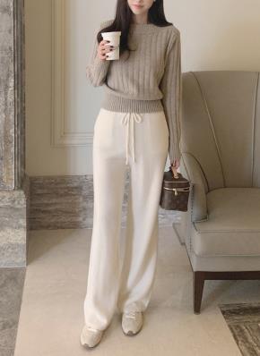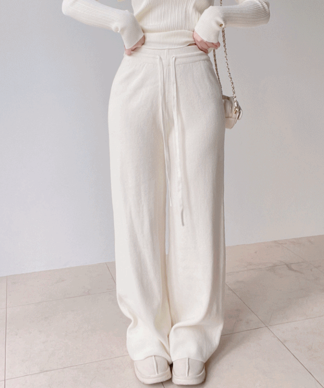 ニットベーシックウエストゴムドローストリングワイドパンツ