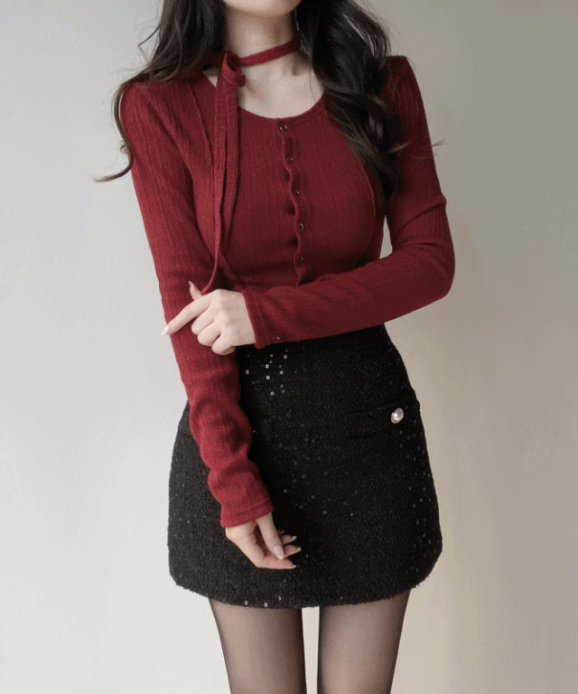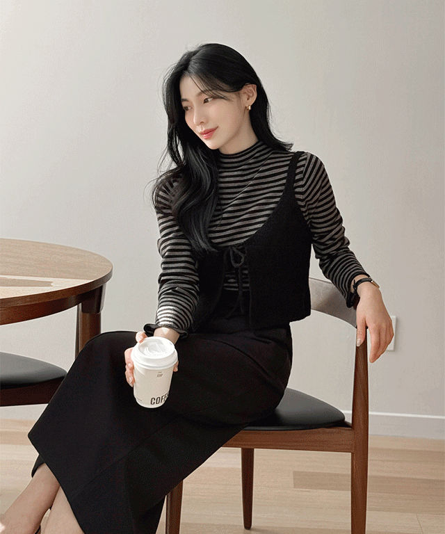 リブストラップスリムダイヤモンドネックニットストラップ付