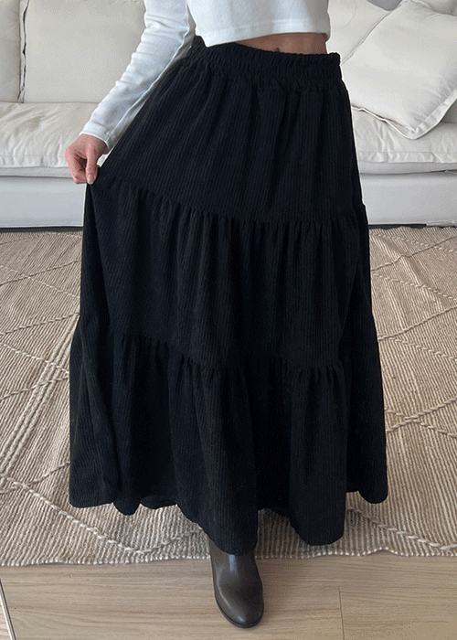 コーデュロイウエストゴムロングティアードAラインスカート